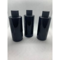 Bouteille vide en plastique noir de 100ml avec capuchon strié en plastique noir recouvert d'EPE assurant une fermeture étanche et évitant les fuites.