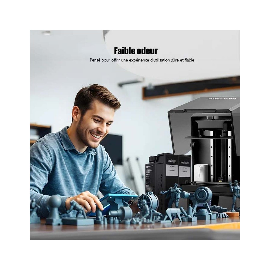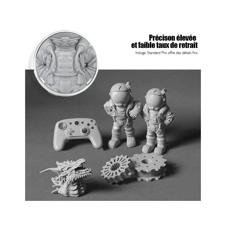Donnez vie à vos idées avec Inslogic Standard Pro Resine Dark Grey, Un gris foncé magnifique pour mettre en valeur vos impressions 3d. Une résine facile à imprimer, précise et fiable. Elle offre des détails fins, un faible retrait et des pièces solides grâce à sa grande résistance à la traction et sa ténacité améliorée.