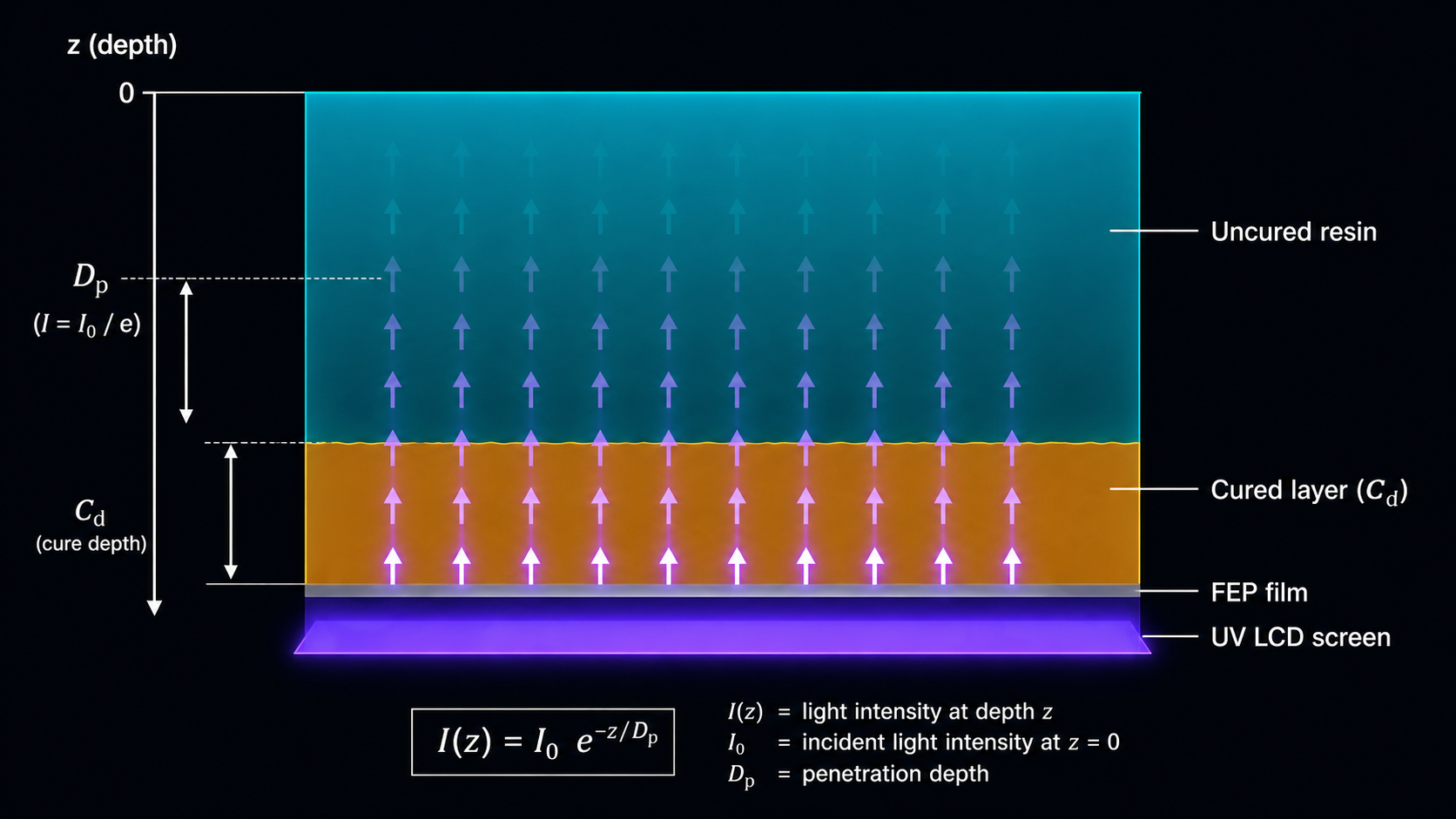 La photopolymérisation n'est pas magique. C'est de la physique optique et de la chimie des radicaux libres, gouvernée par deux paramètres (Dp et Ec) que chaque résine possède en propre, et que la température, l'état du FEP, et la puissance de votre écran modifient en permanence.